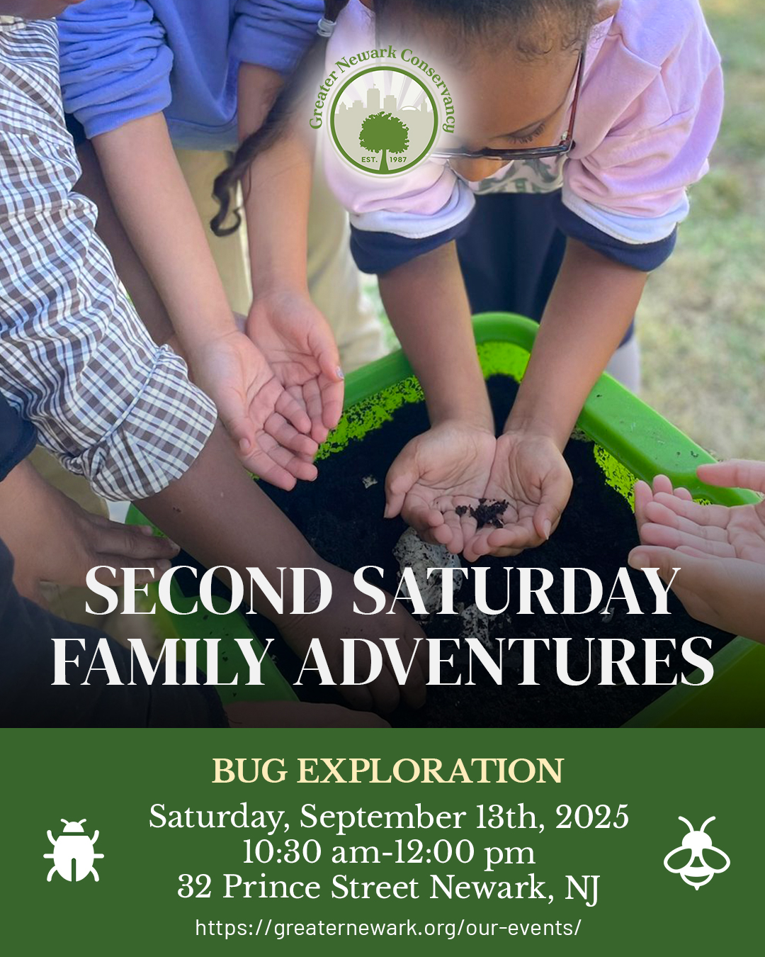 🌿 Join us on Saturday, September 13th from 10:30 AM – 12:00 PM at Greater Newark Conservancy for Bug Exploration β€” a fun and hands-on family program all about insects.