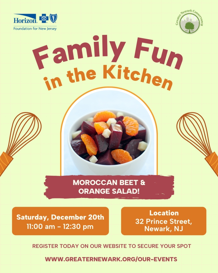 Warm up your winter with a burst of flavor and color at our Family Fun in the Kitchen program! Join Chef Alfi on Saturday, December 20th, from 11:00 AM โ 12:30 PM at Greater Newark Conservancy as we prepare a vibrant Moroccan Beet and Orange Salad with Citrus Vinaigrette. ๐