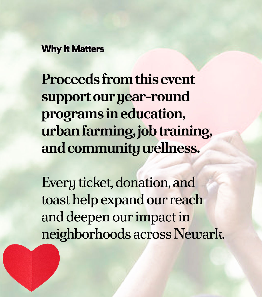 This spring, we're gathering Newark's changemakers, leaders, and champions for an unforgettable evening celebrating community power and the work that's transforming our city. Greater Newark Conservancy's Spring Gala is where impact meets celebration, honoring the residents, gardens, and green spaces that are making Newark healthier and more vibrant.